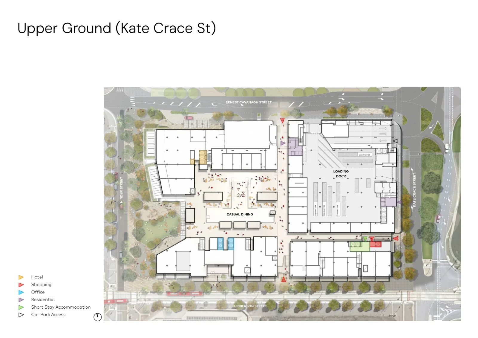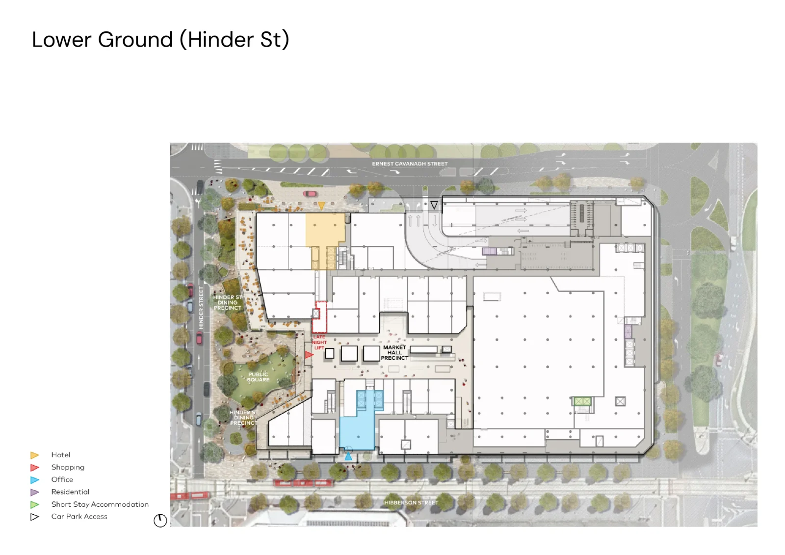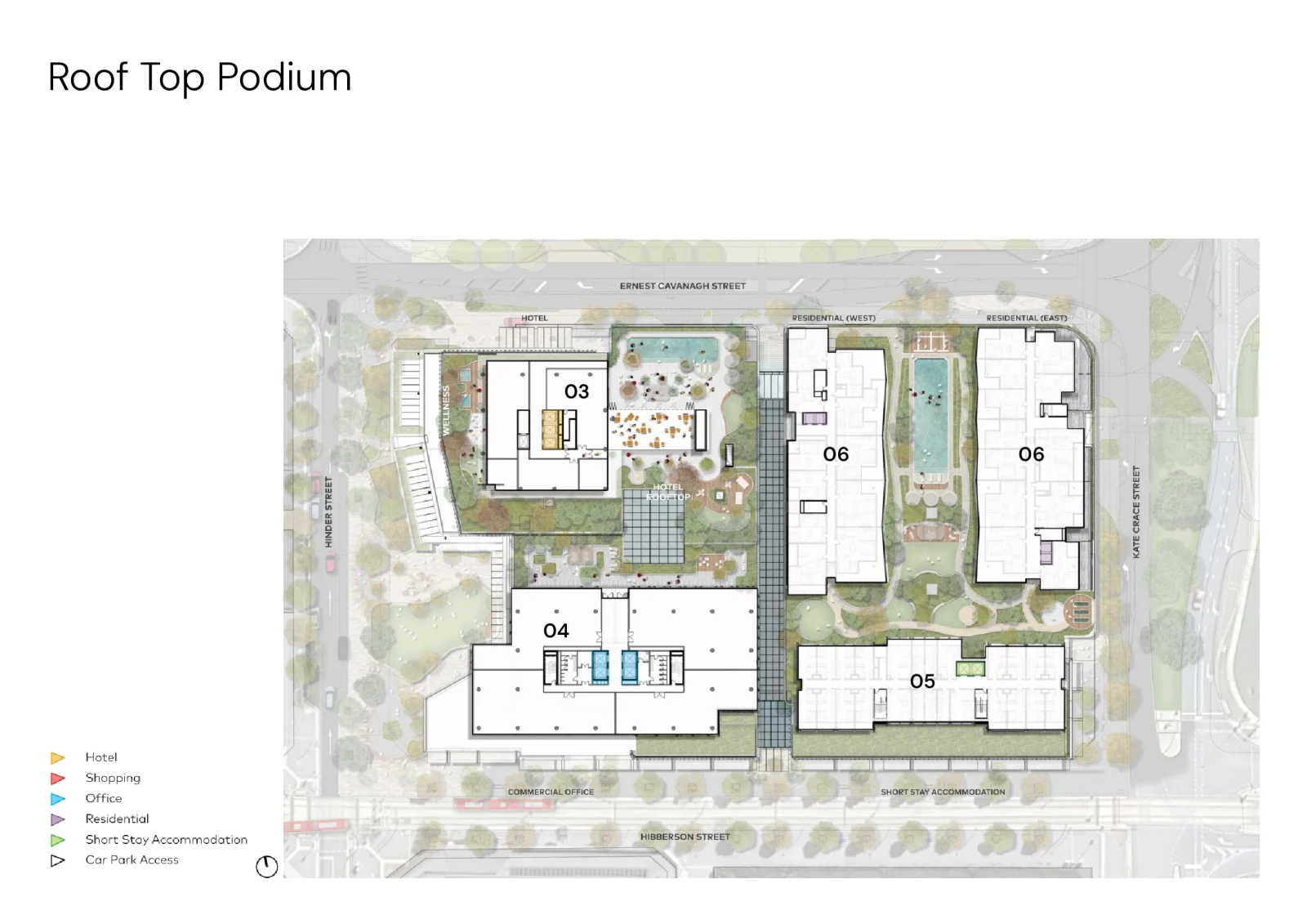 Hinder Street and its adjoining plaza will be reimagined as the community heart of the development. The design takes a holistic approach to the street, verge, and future Urban Plaza to create a vibrant civic space. A proposed Direct Sale of 764m² (under Section 46) is also being pursued through a separate process to enable the best planning outcome, improve land management, and ensure compatibility with the Territory Plan.